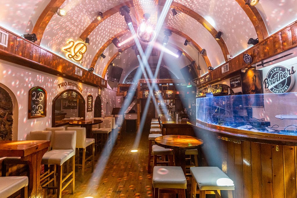 2 Brothers Bar is a vibrant nightlife spot located in the heart of Fira, Santorini. Established in 1983 by Dimitris and Giannis, the bar is now run by their sons, Jack and Leuteris, continuing the family tradition. Nestled among the picturesque whitewashed alleys of Fira, it offers a lively atmosphere that attracts both locals and tourists looking for an authentic Greek island nightlife experience.