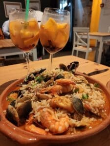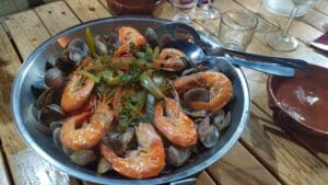 The ambiance at À do Pinto is warm and inviting, featuring a contemporary yet cosy interior that reflects the rich culinary heritage of the region. Guests can indulge in a variety of dishes such as açorda de camarão (a traditional bread and shrimp soup), arroz de bacalhau com amêijoas (salt cod and clam rice), and the iconic cataplana—a seafood stew cooked in a copper pot. To start, patrons might enjoy fresh oysters or fried squid, while dessert options include traditional Algarvian sweets.
