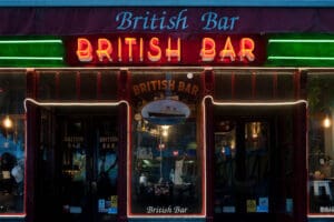 British Bar Lisboa, established in 1919, is a historic pub located in the vibrant Cais do Sodré district of Lisbon. Originally known as "Taverna Inglesa," it has long been a gathering spot for both locals and foreigners, including sailors and artists. The establishment is renowned for its authentic British pub ambiance, featuring a long wooden bar, vintage décor, and a unique clock whose hands rotate in reverse, adding to its charm.