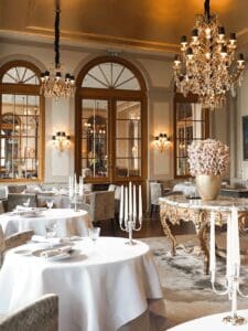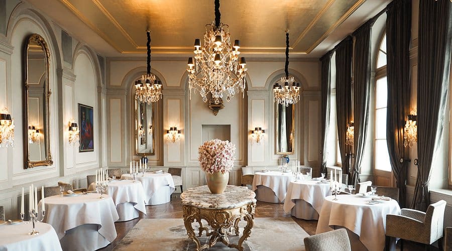 Cheval Blanc by Peter Knogl in Basel is a prestigious, Michelin-starred restaurant with an impressive 4.8-star rating, renowned for its exquisite fine dining experience. Located within the Grand Hotel Les Trois Rois, one of Basel's most iconic hotels, this elegant restaurant offers a luxurious ambiance with panoramic views of the Rhine River and the city. The sophisticated interior, complete with tasteful decor and impeccable service, creates an unforgettable setting for special occasions, business dinners, or romantic evenings. The staff’s attention to detail and expert knowledge ensures a seamless dining experience from start to finish.