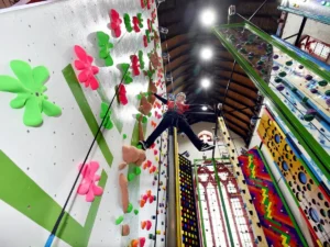 The venue features a variety of climbing walls with different difficulty levels, ranging from easy to more challenging options. Each wall is designed with interactive elements and unique features, such as speed climbs, wobbly walls, and gravity-defying obstacles, making it a fun and engaging experience for participants. The sessions are guided by friendly staff who provide safety instructions and assistance, ensuring that everyone can enjoy climbing safely. In addition to the climbing walls, the venue also includes an impressive "Sky Ride," where climbers can experience a thrilling aerial climb, adding to the overall excitement.