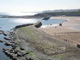 Cullercoats is a small, sandy, crescent-shaped beach, taking up most of Cullercoats Bay, which is enclosed at each end by small piers. At high tide the bay divides into two distinct North and South beaches.
