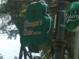 Finnegan's Wake, located at 5/4 Moo 6, Kamala Beach in Phuket, Thailand, is an authentic Irish pub that brings a taste of Ireland to the heart of Phuket. Situated just a short distance from the beach, this cosy and welcoming pub is a popular spot for both locals and tourists who are looking for a lively atmosphere to enjoy drinks, hearty food, and great company. With its traditional Irish pub décor, featuring wood-panelled walls, dark oak furnishings, and memorabilia, Finnegan's Wake provides a warm and friendly environment that’s perfect for socializing, watching sports, or enjoying an evening out.