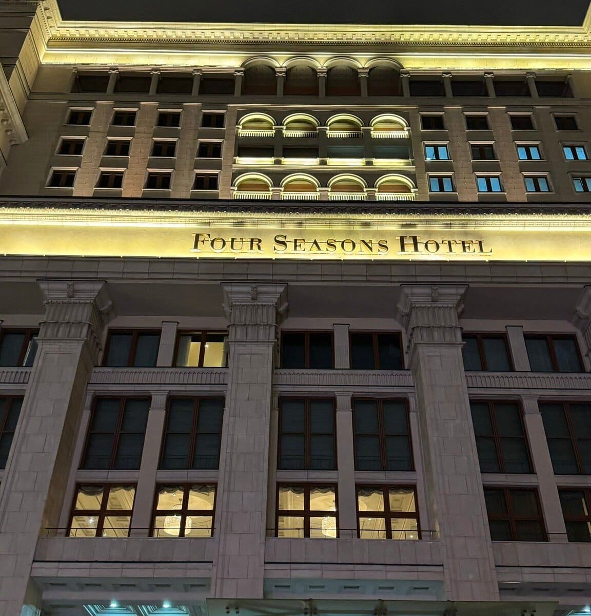 Four Seasons Hotel Moscow is a luxurious 5-star property situated in the heart of Moscow, offering guests a blend of historic grandeur and modern amenities. Located at 2 Okhotny Ryad Street, the hotel is within walking distance of iconic landmarks such as Red Square, the Kremlin, and St. Basil’s Cathedral. Housed in the former Hotel Moskva building, it seamlessly combines classic Russian architecture with contemporary design. The hotel is approximately 30 kilometres from Sheremetyevo International Airport, with convenient access to public transportation and the city's metro system.