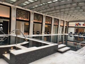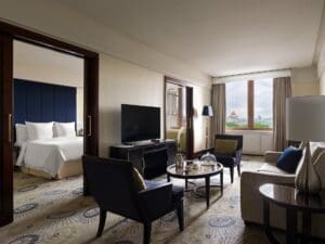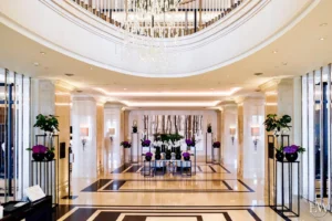 The hotel features 180 spacious rooms and suites, each designed with natural materials and complemented by modern artworks. Many accommodations offer step-out balconies and floor-to-ceiling windows, providing abundant natural light and views of the city. On-site dining options include the Quadrum restaurant, offering Italian cuisine, and the Amnis Café, serving a superfoods menu. The hotel also boasts a 24-hour fitness centre equipped with Life Fitness equipment, a 25-meter indoor lap pool, and a spa offering a range of treatments. Additional amenities include a hair salon, nail bar, and concierge services.