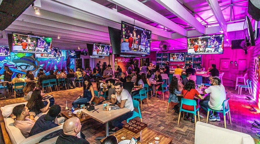 The interior of Grails is sleek and modern, featuring a mix of industrial and contemporary design elements that create a spacious and comfortable setting. With large flat-screen TVs scattered throughout, the bar and dining areas are designed for guests to easily watch games, making it the perfect destination for any sporting event. The venue also includes a vibrant outdoor patio where guests can enjoy Miami’s warm weather while indulging in tasty food and drinks. The atmosphere is lively, with upbeat music, sports action, and a high-energy vibe, making it ideal for both casual visits and special occasions with friends or family.