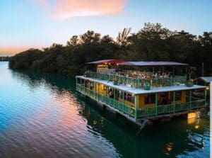 The HouseBoat Grill offers a unique dining experience moored in the tranquil waters of the Montego Bay Marine Park Fish Sanctuary. Guests can enjoy dinner in the cosy dining room, on the upper deck under the stars, or waterside, entertained by the nightly aquatic ballet of snook and tarpon. The restaurant features a constantly evolving fusion menu created by internationally trained Chef Rich Nurse. Reservations are recommended to ensure a seamless experience.