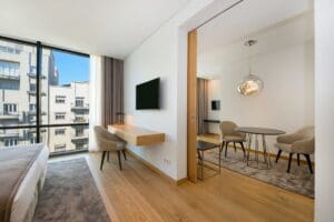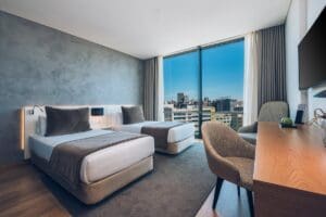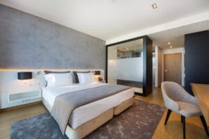 The hotel boasts sleek and spacious rooms and suites, each designed with modern luxury and comfort in mind. Many of the rooms feature large windows with stunning views of the city, allowing guests to enjoy Lisbon’s iconic skyline. Guests can savor a variety of dining experiences at the hotel’s restaurant, offering both local Portuguese flavors and international cuisine. The hotel also features a rooftop pool and terrace, a fitness center, and a full-service spa, providing the perfect environment to unwind after a day of sightseeing or meetings.