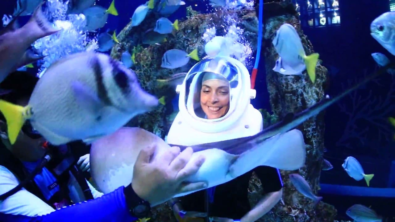 Popular attractions include the touch tanks, where visitors can interact with rays and echinoderms like starfish and sea urchins, and the Sea Trek® experience, which allows guests to walk underwater with marine life. The aquarium also features a dolphin presentation at 7:00 PM daily, included with general admission. For those interested in swimming with dolphins, Delphinus offers various programs, though these require separate booking and may include additional charges for transportation.