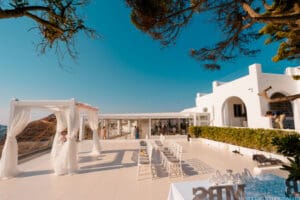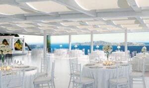 Le Ciel Restaurant in Santorini is a highly rated, 4.8-star dining destination that offers a sophisticated and luxurious experience with breathtaking views of the caldera. Located in the picturesque village of Imerovigli, the restaurant boasts an elegant, modern ambiance that perfectly complements its stunning location. With a spacious terrace overlooking the Aegean Sea, guests can enjoy their meal while watching the sun dip below the horizon—an experience that adds to the allure of this exceptional restaurant.
