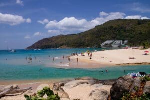 Tourists should visit Nai Harn Beach to experience one of Phuket’s most serene and beautiful natural settings. Its calm waters, scenic surroundings, and relaxed vibe make it an ideal destination for those seeking a tranquil escape and a taste of the island’s natural charm. The beach’s peaceful ambiance and stunning scenery provide a perfect backdrop for relaxation and unwinding.