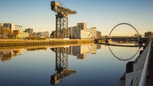 The River Clyde is the historic and iconic waterway that flows through the centre of Glasgow, stretching from the Lowther Hills in South Lanarkshire to the Firth of Clyde. In the city, it winds past a blend of old shipyards and modern architecture, forming a scenic corridor of Glasgow's evolution. The riverbanks feature sweeping views, famous bridges like the Clyde Arc, and major landmarks such as the Glasgow Science Centre and Riverside Museum. With wide pedestrian paths, cycleways, and waterside promenades, the Clyde offers a picturesque setting that captures both the industrial past and urban renewal of the city.