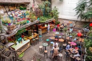 Ruin bars in Budapest are a defining feature of the city’s nightlife, particularly in the Jewish Quarter of District VII. These bars began appearing in the early 2000s, when abandoned buildings and courtyards—often in a state of charming decay—were creatively transformed into eclectic social spaces. The original and most famous is Szimpla Kert, which set the tone with its mix of quirky furniture, fairy lights, retro decor, and community-driven atmosphere. These venues retain their raw, unfinished feel while embracing a sense of playful, artistic chaos.