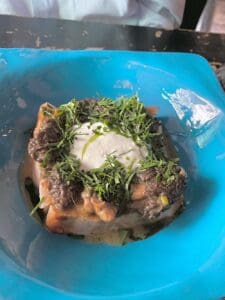 The menu is inventive, pushing beyond standard Russian fare. Chef Georgy Troyan leads the kitchen, working with restaurateurs Ilya Tyutenkov and Uilliam Lamberti. Dishes combine classic techniques—French cooking often—with local ingredients and traditions. Examples include lamb tongues with beetroot and horseradish, Celery root “vermicelli” with truffle sauce, oven‑baked pike perch with cabbage, or Camembert in ash on poppy brioche. There are also excellent breakfast offerings; the restaurant opens early (around 9 am) and the breakfast menu runs until mid‑afternoon.