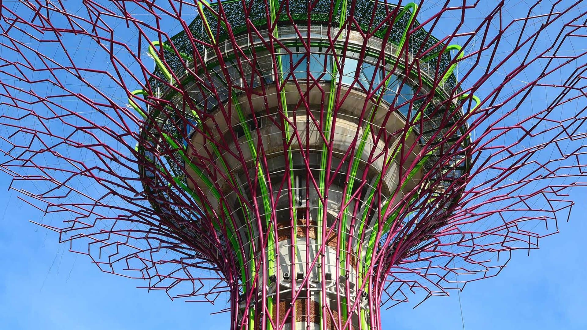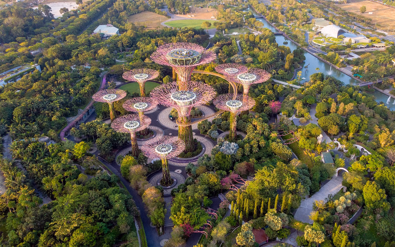 Supertree Grove is one of the most iconic attractions within Singapore's Gardens by the Bay, offering a stunning blend of nature and technology. This striking collection of vertical gardens features 18 towering structures, ranging from 25 to 50 meters tall, that are designed to resemble enormous trees. These Supertrees are adorned with a variety of flowering plants, ferns, and epiphytes, creating a mesmerizing display that changes with the seasons. Visitors can take a walk on the OCBC Skyway, a suspended walkway that connects several of the Supertrees, offering breath-taking panoramic views of the gardens and the Marina Bay skyline.