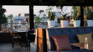 The venue features a semi-enclosed rooftop terrace that provides panoramic views of the Mediterranean Sea and the surrounding mountains, creating a picturesque setting for guests. The staff is known for their friendliness and attentiveness, enhancing the overall experience. Visitors can enjoy a variety of drinks, including classic cocktails, local beers, and wines, all reasonably priced for the area. The bar also offers a selection of food items such as chicken wraps and steaks, which are praised for their quality and taste.