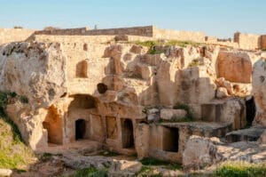 The Tombs of the Kings in Paphos, Cyprus, is a remarkable archaeological site known for its grandeur and historical significance. Despite its name, the tombs were not intended for royalty but for high-ranking officials and aristocrats during the Hellenistic and Roman periods. Carved into solid rock, these underground tombs feature Doric columns and expansive burial chambers, some designed to resemble the homes of the living with peristyle atriums. This architectural style reflects the cultural connections between ancient Paphos and Alexandria. The site is part of the UNESCO-listed Archaeological Park of Kato Paphos, highlighting its global importance.