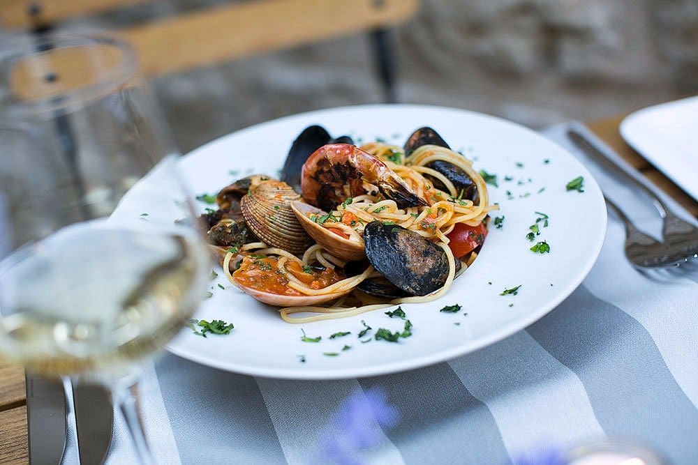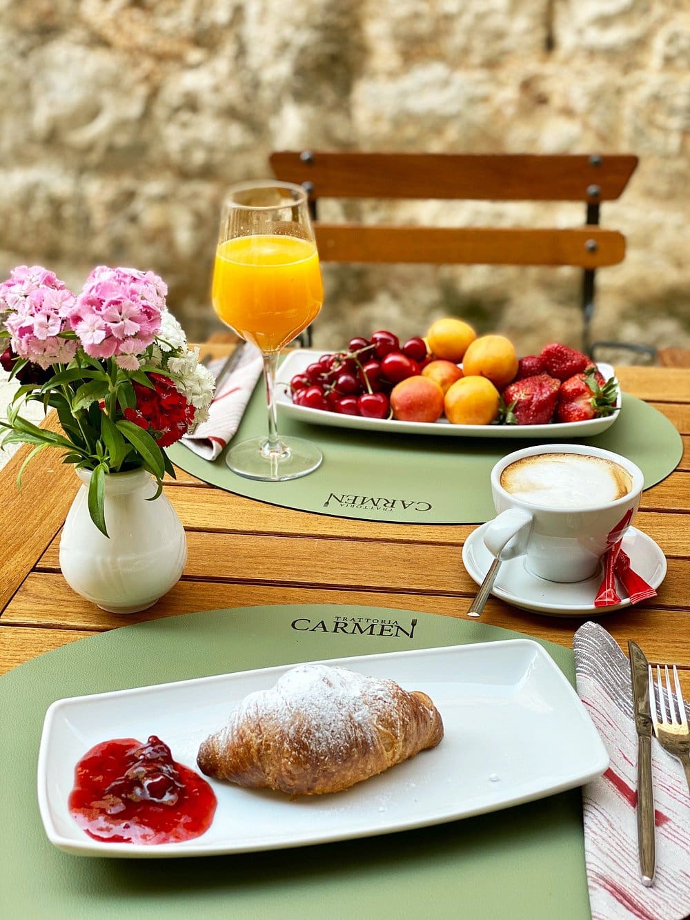 The menu at Trattoria Carmen changes daily, depending on the freshest ingredients available at the local markets. Specialties include homemade pasta with truffles and shrimp, octopus stewed in a rich sauce of tomato, olives, and capers, and pašticada (beef stewed in sweet wine and prunes). They also serve grilled fish and meats with a Mediterranean flair, all prepared with locally sourced seafood and organic vegetables.