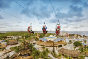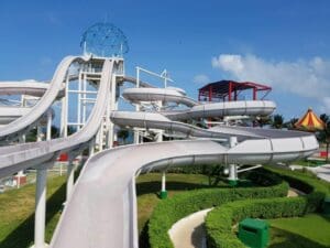 Ventura Park Cancún is a family-friendly amusement and water park located in the Hotel Zone at Boulevard Kukulcán Km. 25. The park offers a variety of attractions across different themed areas, including Wet'n Wild World, Aaah! Ventura, Fun World, Grand Prix, and Underworld. Visitors can enjoy water slides, zip lines, go-kart racing, laser mazes, and interactive gaming experiences. The park is open daily from 10:00 AM to 5:00 PM.